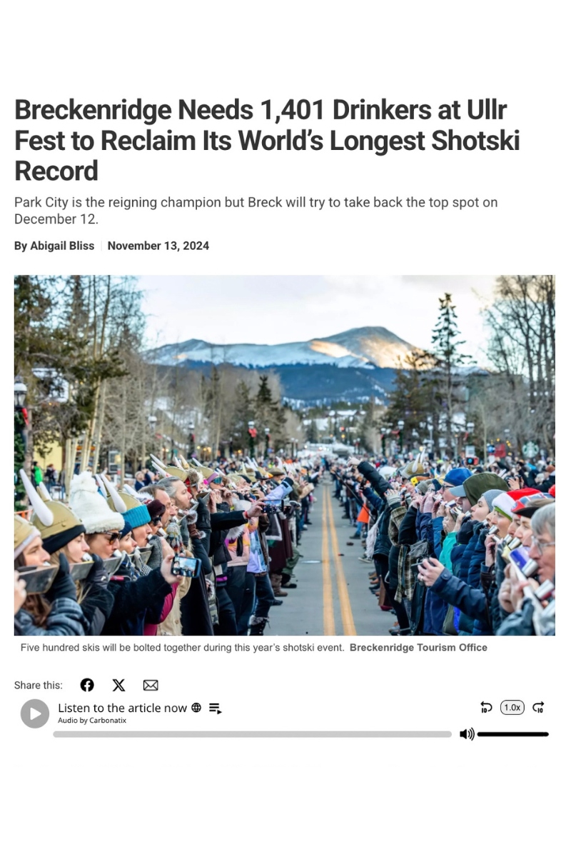 Breckenridge Needs 1,401 Drinkers at Ullr Fest to Reclaim Its World’s Longest Shotski Record